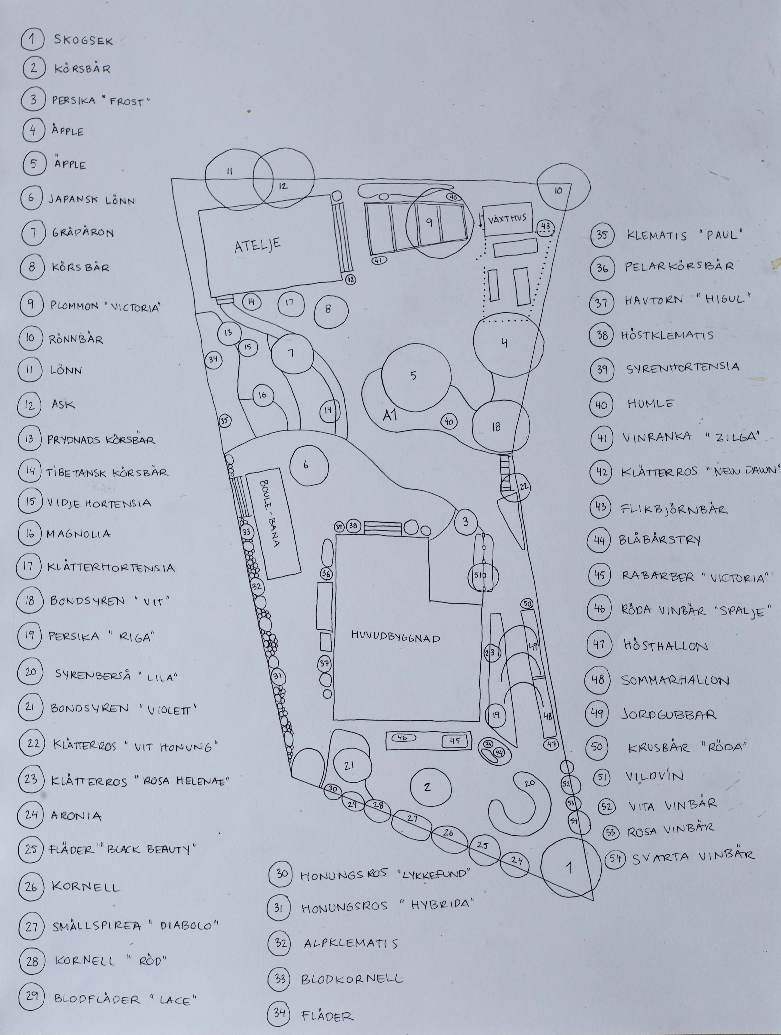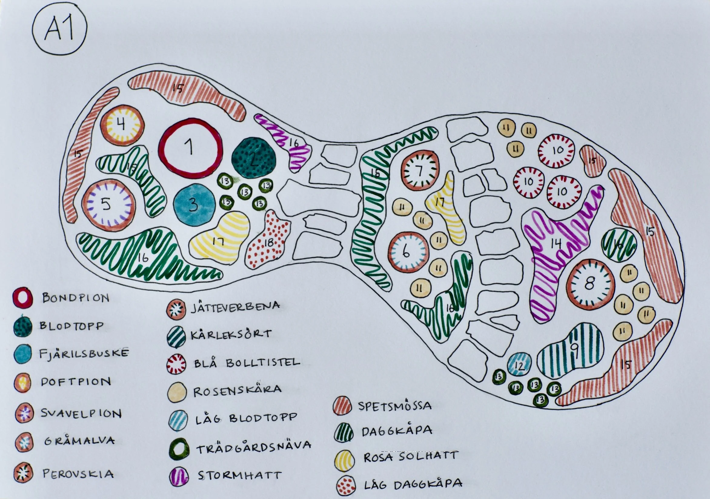 Skiss/planteringsritning/Växtförteckning